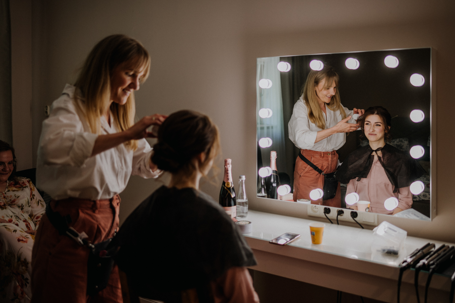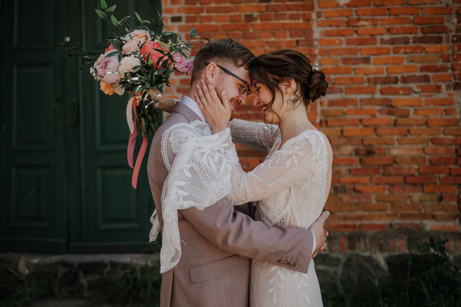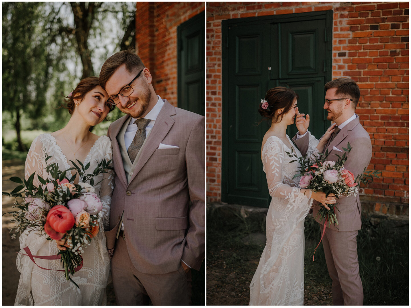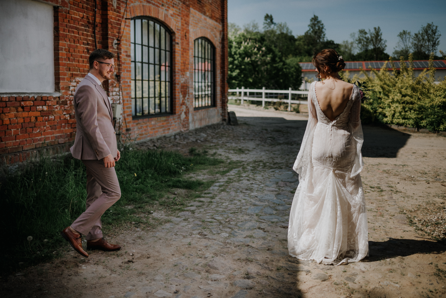 Taki właśnie był plenerowy ślub Moniki i Pawła w urokliwym miejscu na pomorzu, czyli Zielonej Bramie w Przywidzu. Przygotowania odbyły się w pokojach hotelowych, które tak myślę, kiedyś był stajniami. W środku nadal znajdziemy kojarzące się z nią elementy. Piękne światło wpada do pokoi, na zewnątrz goście toczą już rozmowy, witają się ze sobą, tak dawno się przecież nie widzieli. Niedaleko uczniowie szkółki jeździeckiej czyszczą swoje konie, dekoratorki kończą ostatnie szlify przy dekoracjach w plenerze. Zostaje tylko zachwycać się tą atmosferą beztroski i rozlewającej się wokół miłości.